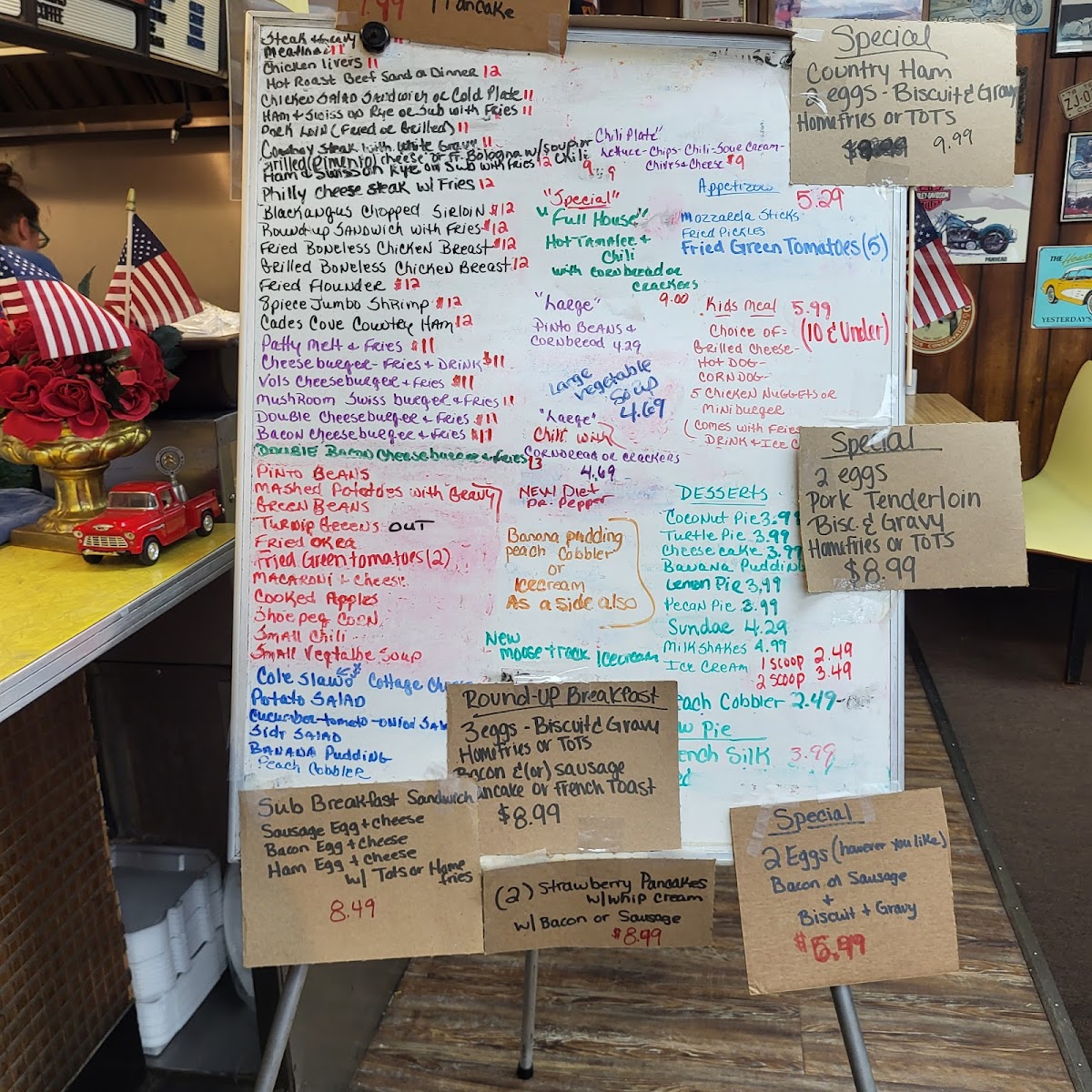 “ Round up has always had really good home style food and atmosphere attracting local politicians and local stars such as jhonny knoxville, Sam the owner and all the ladys behind the counter are great to speak with. Simply put this establishment is a hidden gem of knoxville so if your local or just a pesserby please stop by round up and have an awsome lunch and maybe even some ice cream my three favorite foods there foods here are the double bacon cheeseburger, steak and gravy, and meatloaf. Happy eating freinds. ”